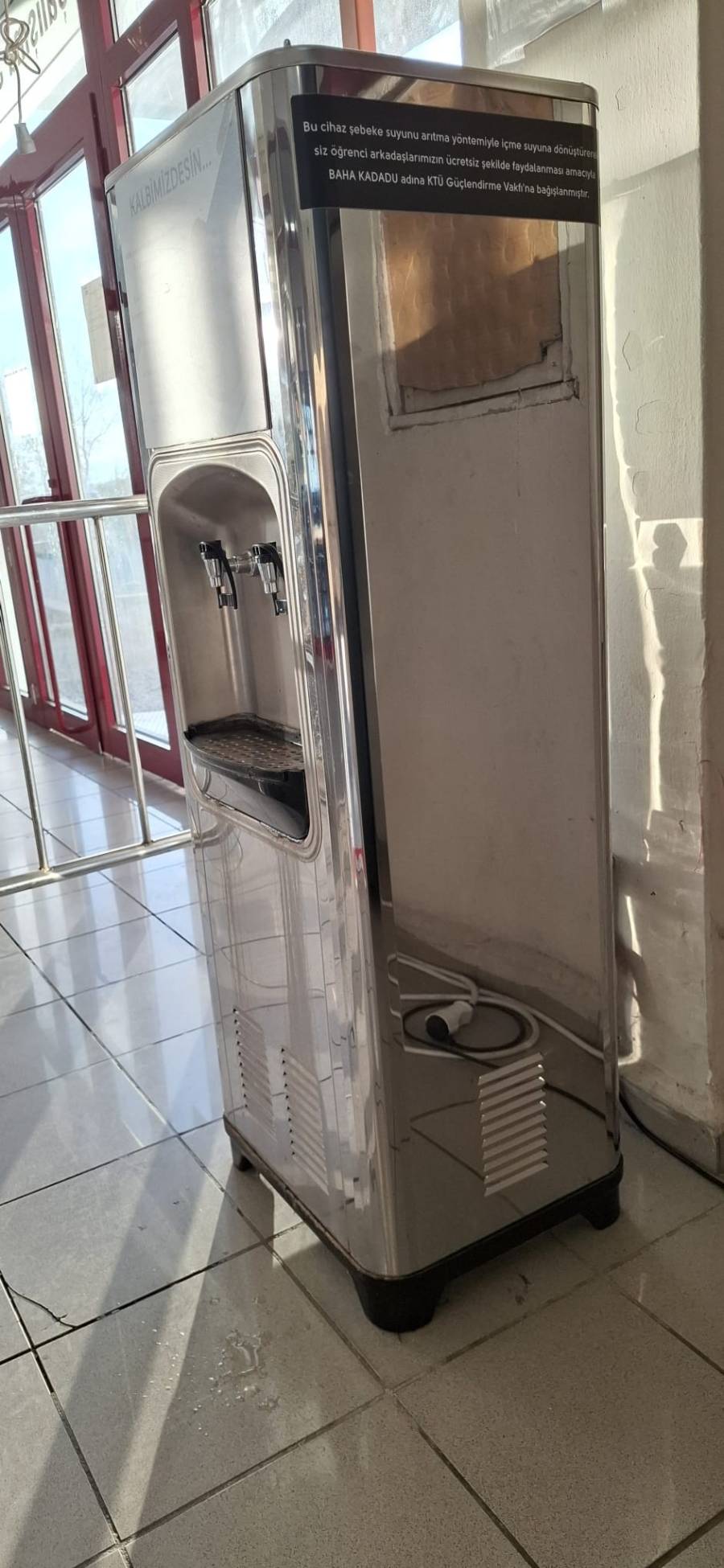 Üniversitemiz Kütüphane ve Dokümantasyon Daire Başkanlığında sağlıklı (ücretsiz) içme suyu istasyonu bulunmakta ve düzenli olarak denetimleri yapılmaktadır.
