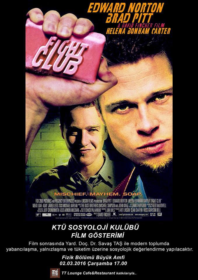 2 Mart Çarşamba günü Fizik Bölümü Büyük Amfide Sosyoloji Kulübü tarafından film gösterimi yapılacaktır.