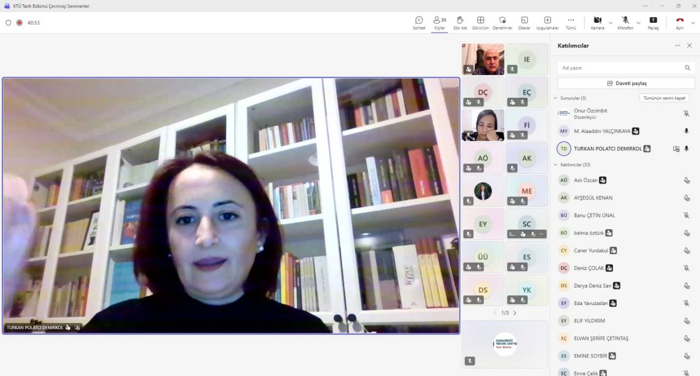 15.10.2025 tarihinde saat 20:00'da On Dokuz Mayıs Üniversitesi hocalarından Prof. Dr. Özlem Genç'in sunumu ile Ortaçağ Avrupası'nda Sosyal Hayat adlı çevrimiçi seminer KTÜ tarih bölümü hocaları ve öğrencilerinin de katılımı ile gerçekleştirilmiştir.
