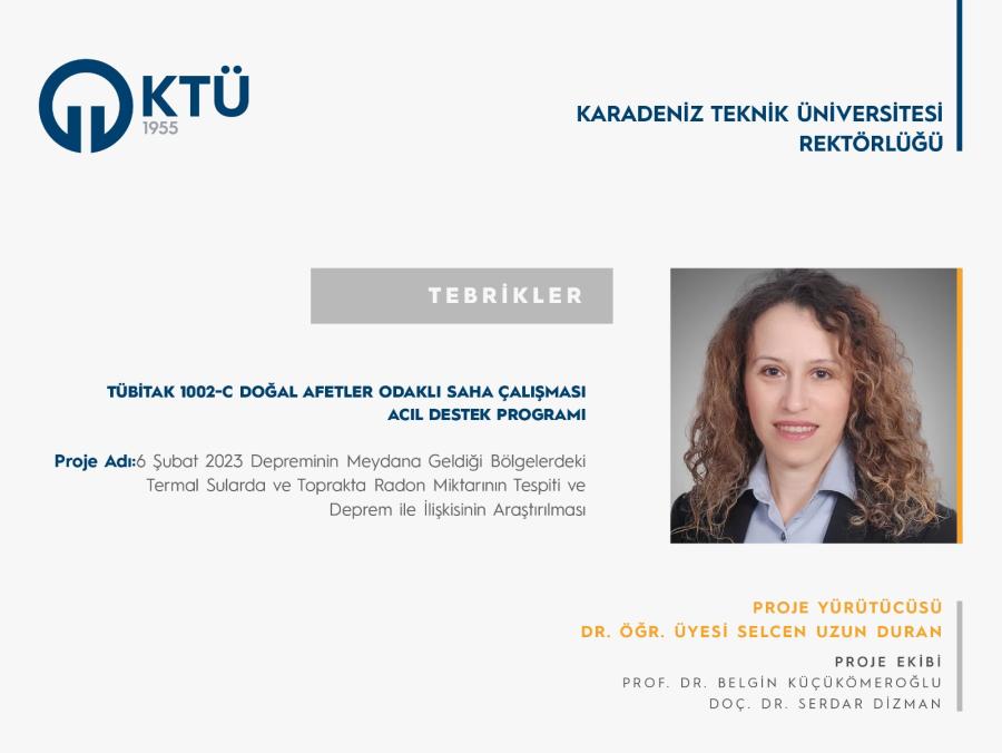 Dr. Öğr. Üyesi Selcen UZUN DURAN'a TÜBİTAK Proje Desteği