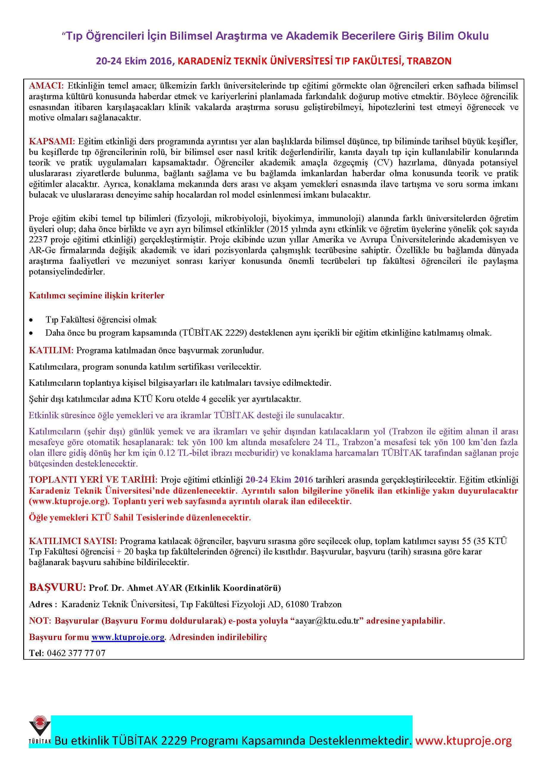 Tıp Öğrencileri için TÜBİTAK Destekli Kurs