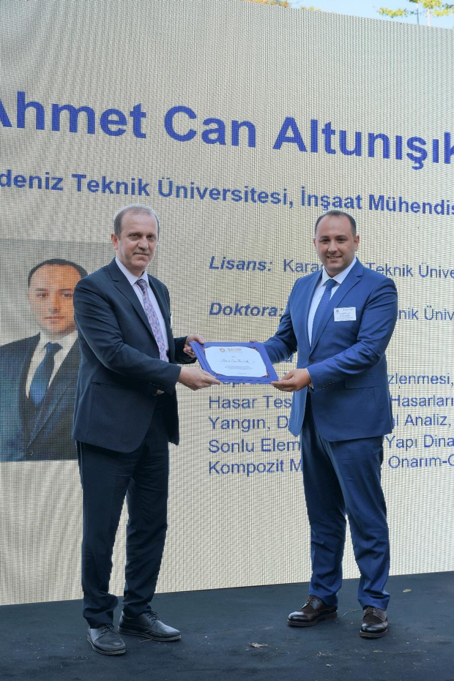 Ödül törenine Sayın Rektörümüz Prof. Dr. Hamdullah ÇUVALCI ile ödüle layık görülen Mühendislik Fakültesi İnşaat Mühendisliği Bölümü Öğretim Üyesi Prof. Dr. Ahmet Can ALTUNIŞIK katıldı. Akademisyenimize ödülü, Rektörümüz takdim etti.