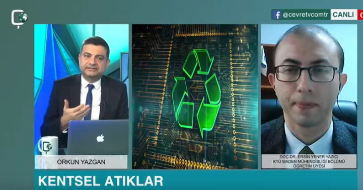 Üniversitemiz Mühendislik Fakültesi Maden Mühendisliği Bölümü Öğretim Üyesi Doç. Dr. Ersin Yener YAZICI, Çevre TV'de konuk olduğu Çevre Günlüğü adlı programda, "Döngüsel Ekonomide Kentsel Madenciliğin Rolü" üzerine değerlendirmelerini aktardı. Doç. Dr. Ersin Yener YAZICI, program kapsamında değindiği bazı konuların yanı sıra ekonomik değeri yüksek metaller içeren kentsel atıkların geri dönüşümünün hem potansiyel çevresel etkilerin azaltılması hem de doğal kaynakların korunması anlamında çok önemli olduğunu vurguladı.