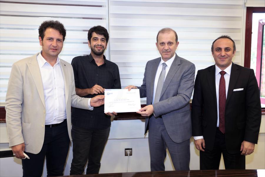 Projeleri desteklenen akademisyenlerimizin yanı sıra uygulayıcı kuruluş faaliyetlerini yürüten Üniversitemiz Teknoloji Transferi Uygulama ve Araştırma Merkezi (TTM) Müdürü Prof. Dr. Oktay YILDIZ, Girişimcilik ve Şirketleşme Modül Koordinatörü Eren YILMAZ, Proje Uzmanı Furkan KALYONCU, Proje Uzmanı Güler Tuğba GÜLTEKİN'in katılım sağladığı törende girişimcilerimize, tebrik belgelerini Rektörümüz Prof. Dr. Hamdullah ÇUVALCI takdim etti. Rektörümüz, akademisyenlerimizi tebrik ederek çalışmalarında başarılar diledi.