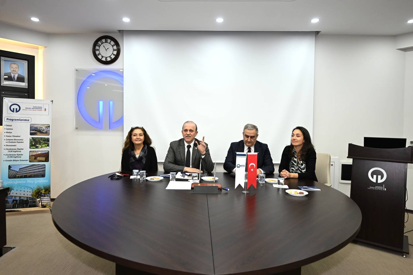 Üniversitemiz “2026 Yılına Girerken Kalite Güvence Sistemi” başlıklı toplantı, Rektörümüz Prof. Dr. Hamdullah ÇUVALCI başkanlığında, İktisadi ve İdari Bilimler Fakültesi (İİBF) Dekanlık Toplantı Salonu’nda yoğun katılımla gerçekleştirildi.