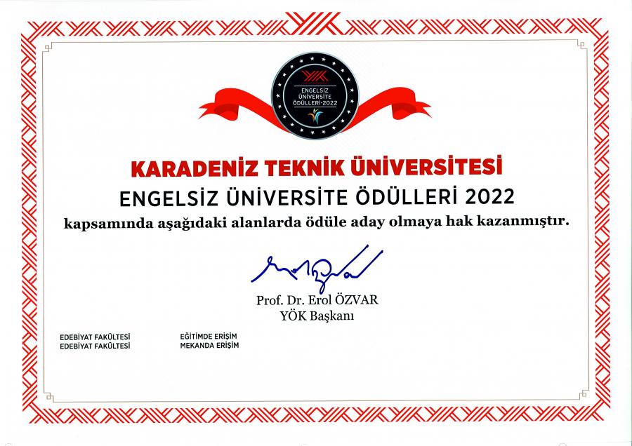 KTÜ 2022 Yılı Engelsiz Üniversite Ödülleri'nde İki Turuncu Bayrak ile Ödüllendirildi