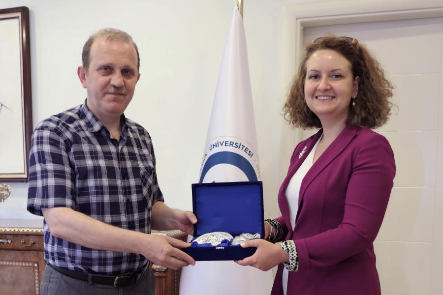 Üniversitemiz Sağlık Hizmetleri Meslek Yüksekokulu Tıbbi Görüntüleme Teknikleri Ana Bilim Dalı’nda Öğr. Gör. Dr. Selcen Uzun DURAN ve Orta Doğu Teknik Üniversitesi (ODTÜ) Uzay ve Hızlandırıcı Teknolojiler Uygulama ve Araştırma Merkezi (İVMER) Müdürü Prof. Dr. M. Bilge DEMİRKÖZ, KTÜ ve ODTÜ iş birliği kapsamında yapılan projeler ve çalışmalar hakkında bilgi alışverişinde bulunmak amacıyla Rektörümüz Prof. Dr. Hamdullah ÇUVALCI’yı makamında ziyaret etti.