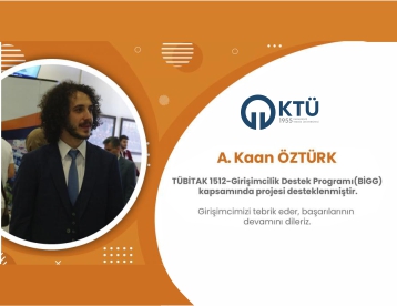 KTÜ TTM'nin Uygulayıcı Kuruluş olarak yürüttüğü BİGG Programı kapsamında; Üniversitemiz Mühendislik Fakültesi Gemi İnşaatı ve Gemi Makinaları Mühendisliği Bölümü Yüksek Lisans öğrencisi A. Kaan ÖZTÜRK’ün TÜBİTAK 1512 Girişimcilik Destek Programı projesi desteklenmiştir.