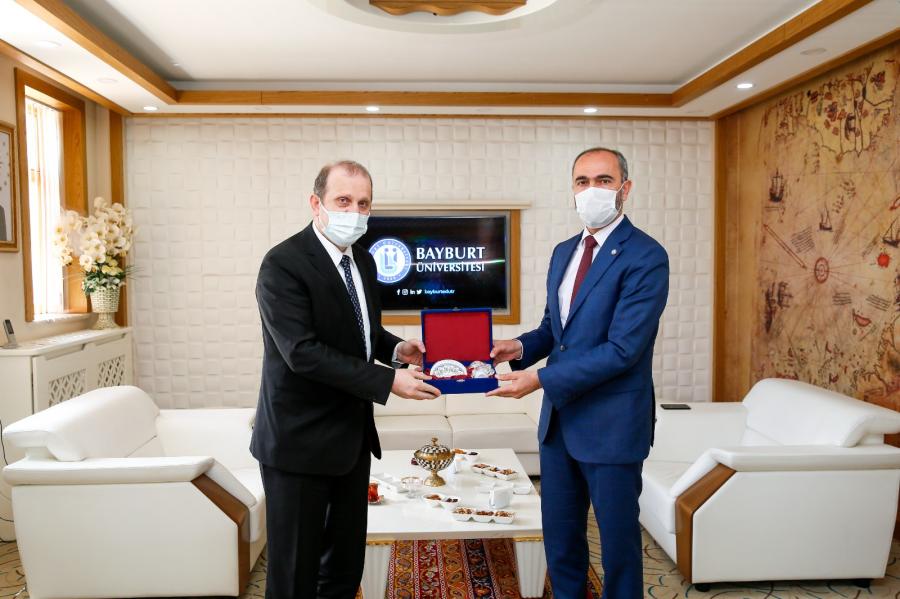 Rektörümüz Prof. Dr. Hamdullah ÇUVALCI, Bayburt Üniversitesi Rektörlüğü'ne atanan, aynı zamanda Uluslararası Bocce Konfederasyonu (CBI) ve Türkiye Bocce Bowling ve Dart Federasyonu (TBBDF) Başkanı olan Prof. Dr. Mutlu TÜRKMEN’i makamında ziyaret ederek tebrik etti.