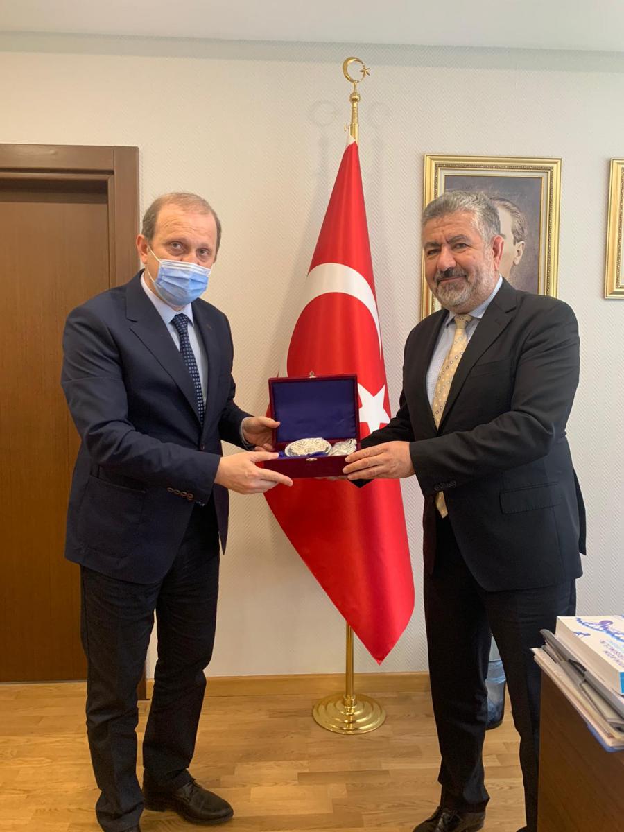 Rektörümüz Prof. Dr. Hamdullah ÇUVALCI, T.C. Sanayi ve Teknoloji Bakan Yardımcısı Dr. Çetin Ali DÖNMEZ’i, makamında ziyaret etti.