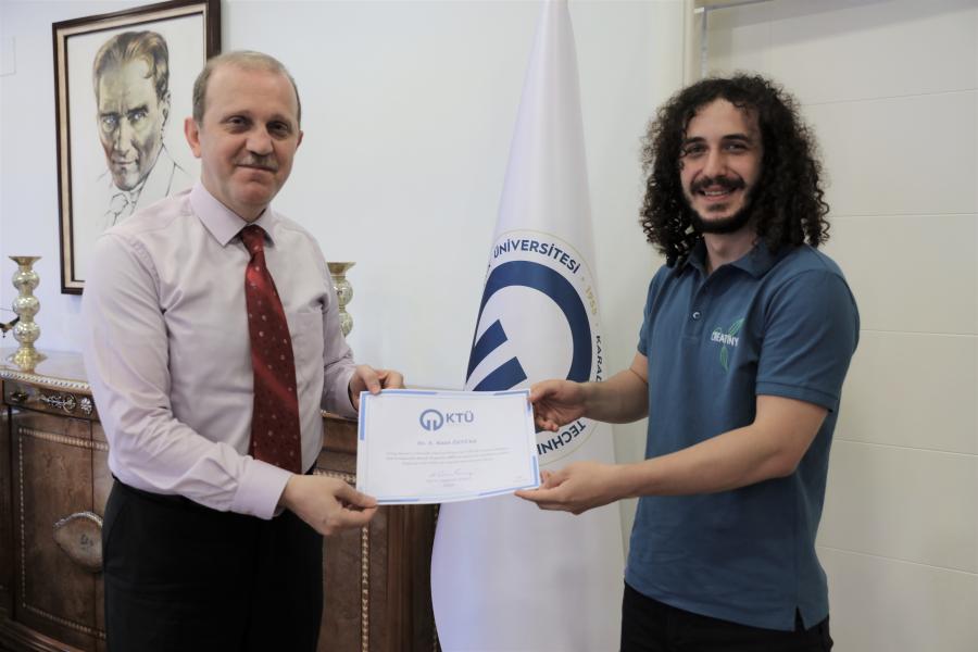 Rektörümüz Prof. Dr. Hamdullah ÇUVALCI, Üniversitemiz Teknoloji Transferi Uygulama ve Araştırma Merkezi'nin Uygulayıcı Kuruluş olarak yürüttüğü BİGG Programı kapsamında; TÜBİTAK 1512 Girişimcilik Destek Programı projesi desteklenen Üniversitemiz Mühendislik Fakültesi Metalurji ve Malzeme Mühendisliği Bölümü Öğretim Elemanı Arş. Gör. Sefa Emre SÜNBÜL ve Üniversitemiz Mühendislik Fakültesi Gemi İnşaatı ve Gemi Makinaları Mühendisliği Bölümü Yüksek Lisans öğrencisi A. Kaan ÖZTÜRK’ü makamında ağırlayarak kendilerini tebrik etti.