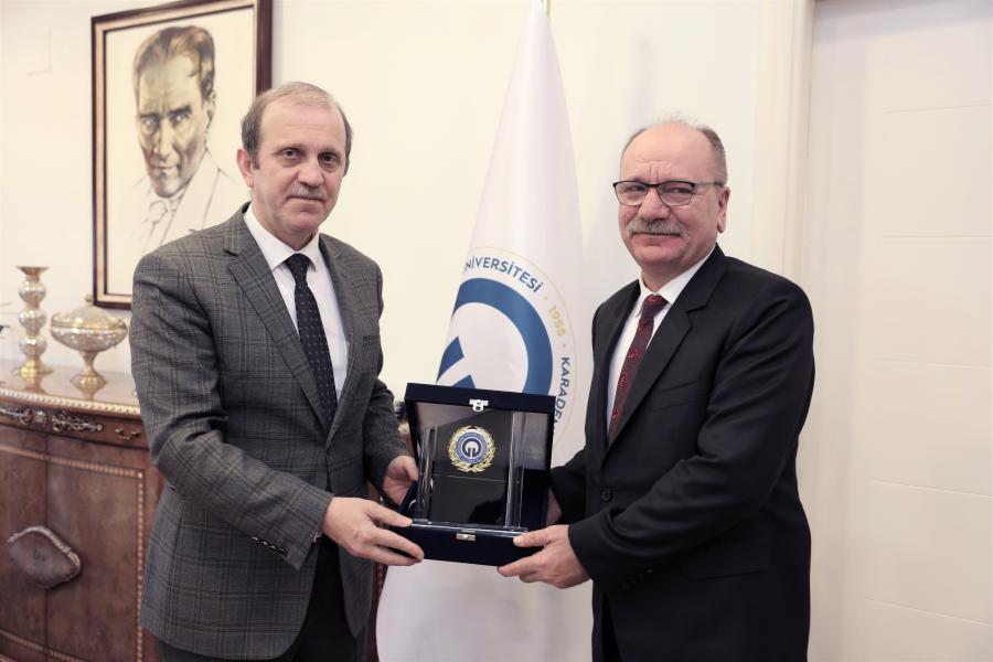 Trabzon Bölge Adliye Mahkemesi Başkanı Hasan KÜÇÜKOSMAN, Rektörümüz Prof. Dr. Hamdullah ÇUVALCI’yı makamında ziyaret etti.