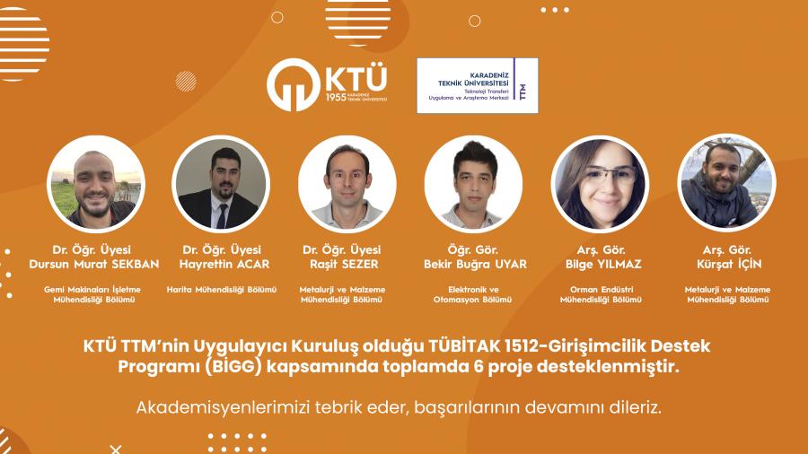 KTÜ TTM'nin Uygulayıcı Kuruluş Olduğu TÜBİTAK 1512 - Girişimcilik Destek Programı (BİGG) Kapsamında Toplamda 6 Proje Desteklenmiştir