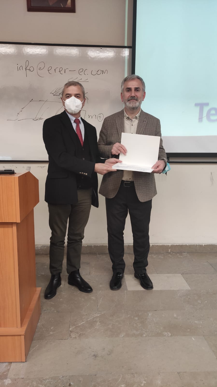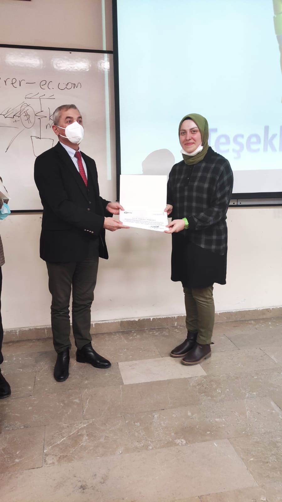 Üniversitemiz Mühendislik Fakültesi Makine Mühendisliği Bölümü Teknik Seminerler Serisi, hız kesmeden devam ediyor. “Fosil Yakıtlı Araçlardan Elektrikli Araçlara Geçişte Zorluklar ve Fırsatlar” konulu seminer, Üniversitemiz Mühendislik Fakültesi Makine Mühendisliği Bölümü'nden 1988 yılında mezun olan, ERER Mühendislik ve Danışmanlık Hizmetleri LTD. Şirketi’nden Dr. Mustafa ERDENER ve Makine Mühendisi Zeynep Ebrar TEKİNGÜNDÜZ tarafından 29 Aralık 2021 tarihinde, Makine Mühendisliği Bölümü’nde gerçekleştirildi. Seminer sonunda, Rektörümüz Prof. Dr. Hamdullah ÇUVALCI tarafından Dr. Mustafa ERDENER’e teşekkür plaketi ve Mühendislik Fakültesi Dekanı Prof. Dr. Gençağa PÜRÇEK tarafından Dr. Mustafa ERDENER ve Makine Mühendisi Zeynep Ebrar TEKİNGÜNDÜZ’e teşekkür belgesi takdim edildi.