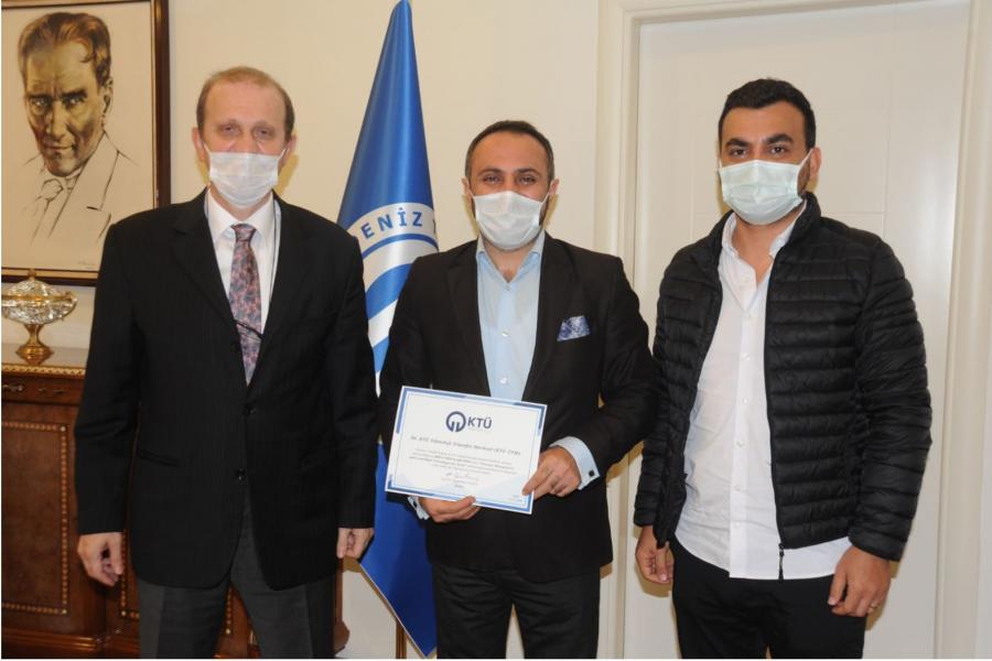 Bu projeyi yürüten ve proje desteği alan KTÜ Teknoloji Transfer Merkezi'ne Rektörümüz Prof. Dr. Hamdullah ÇUVALCI tebrik belgesi takdim etti.