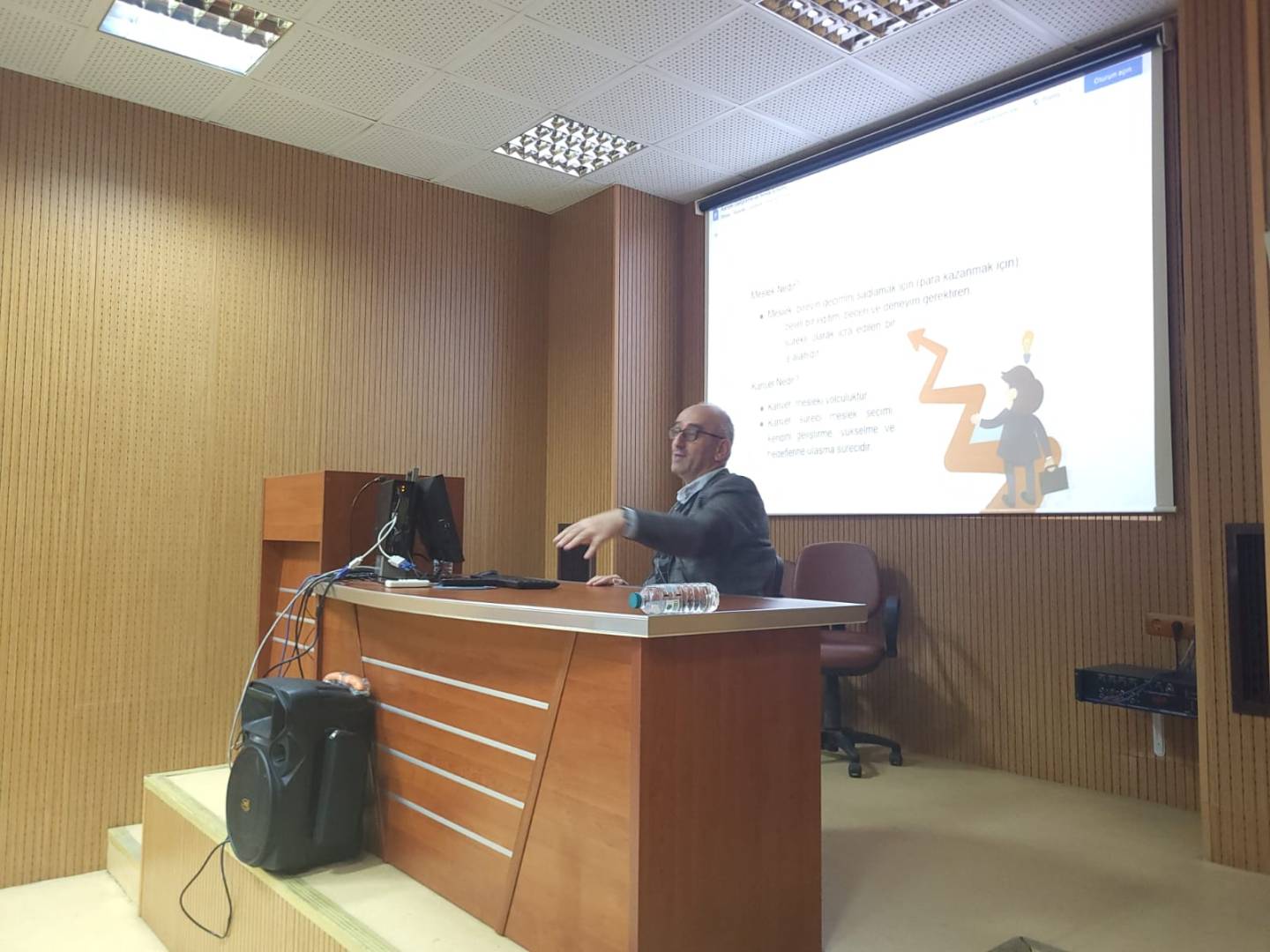 2025-2026 Eğitim Öğretim Yılı Güz Yaryılında Oryantasyon Programı kapsamında Mimarlık ve Şehir Planlama, Makina ve Metal Teknolojileri ve Tasarım Bölümü öğrencilerimize Kariyer Geliştirme Uygulama ve Araştırma Merkezi Müdür Yardımcısı Öğr. Gör. Dr. Zafer YAVUZ tarafından Kariyer Geliştirme ve Özgelecek Hazırlama konulu sunum gerçekleştirildi. İlgili sunumda mezun olacak öğrencilerin çalışma hayatına başlarken karşılaşabilecekleri sorunlar ve çözümleri, etkili iletişim yöntemlerinin iş başvurusunda ve diğer süreçlerdeki önemi başarılı bir kariyer için yapılması gerekenler konusunda ilgili bölümlerin 1. sınıf öğrencilerine bilgi ve tecrübeler aktarılmıştır. Programa Müdür Yardımcımız Dr. Öğretim Üyesi Hamdi ÖZTÜRK katılım sağlamıştır.
