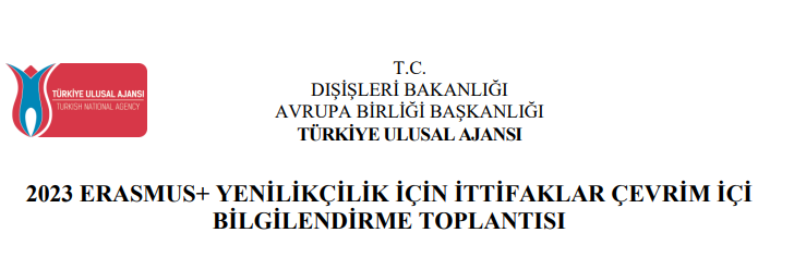 Bu kapsamda 2023 yılı Erasmus+ "Yenilikçilik İçin İttifaklar" projeleri hakkında bilgilendirme yapılması ve iyi uygulama örneklerinin sunulması amacıyla Türkiye Ulusal Ajansı ve AB Başkanlığı işbirliğinde 23 Şubat 2023 Perşembe saat 14:15'de çevrimiçi etkinlik düzenlenecektir.