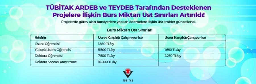 TÜBİTAK ARDEB ve TEYDEB Tarafından Desteklenen Projelere İlişkin Burs Miktarı Üst Sınırları Artırıldı!