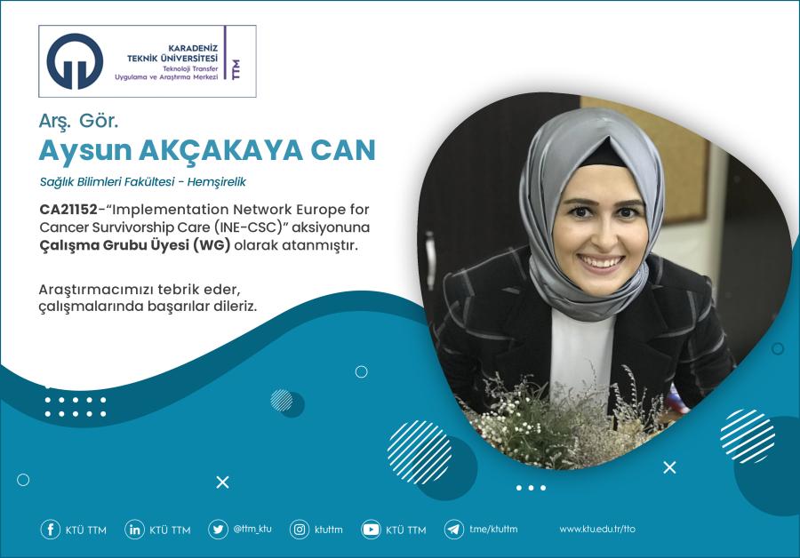 Üniversitemiz Sağlık Bilimleri Fakültesi Hemşirelik Bölümü Bölümü öğretim elemanı Arş. Gör. Aysun AKÇAKAYA CAN, COST Programı’nın “CA21152 - Implementation Network Europe for Cancer Survivorship Care (INE-CSC)” aksiyonuna Çalışma Grubu Üyesi (WG) olarak atanmıştır.