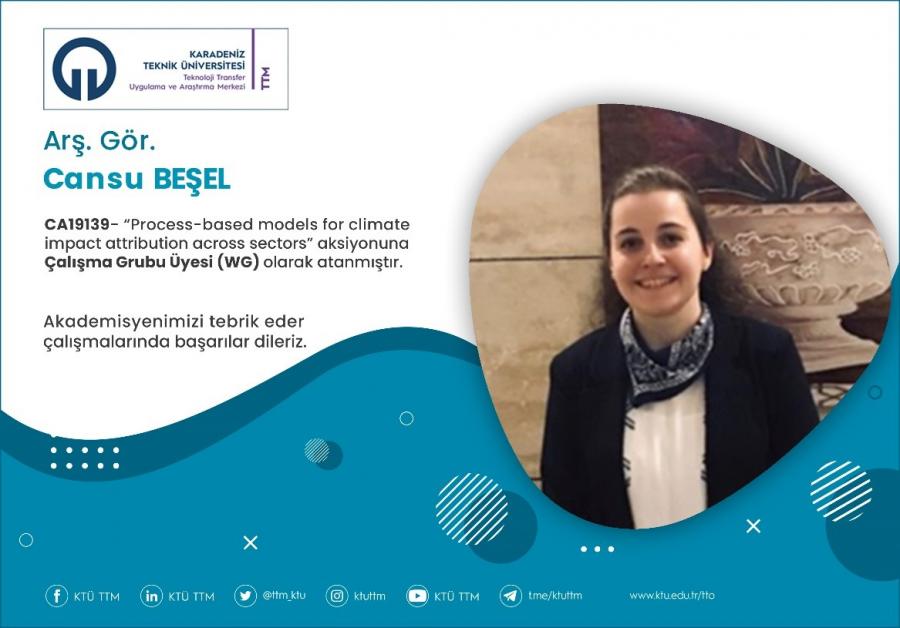 Üniversitemiz Fen Bilimleri Enstitüsü öğretim üyesi Arş. Gör. Cansu BEŞEL, COST Programı’nın “CA19139 - Process-based models for climate impact attribution across sectors” aksiyona Çalışma Grubu Üyesi (WG) olarak atanmıştır.