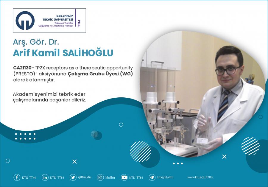 Üniversitemiz Tıp Fakültesi Temel Tıp öğretim üyesi Arş. Gör. Dr. Arif Kamil SALİHOĞLU, COST Programı’nın “CA21130 - P2X receptors as a therapeutic opportunity (PRESTO)” aksiyonuna Çalışma Grubu Üyesi (WG) olarak atanmıştır.
