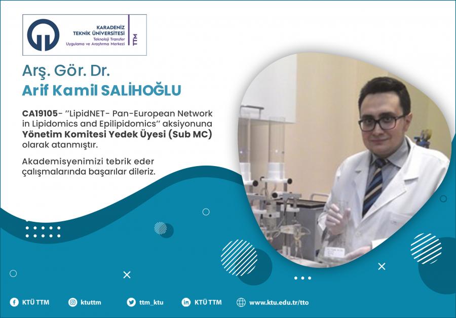 Üniversitemiz Tıp Fakültesi Temel Tıp Bölümü öğretim elemanı Arş. Gör. Dr. Arif Kamil SALİHOĞLU, COST Programı’nın “CA19105 - LipidNET- Pan-European Network in Lipidomics and Epilipidomics” aksiyona Yönetim Komitesi Yedek Üyesi (Sub MC) olarak atanmıştır.