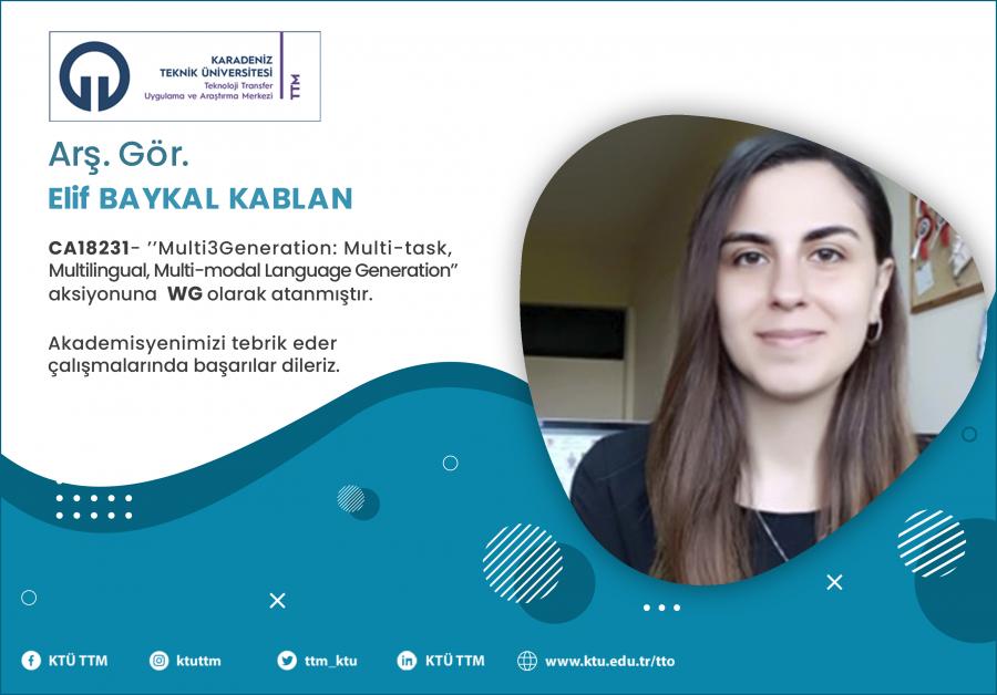 Üniversitemiz Mühendislik Fakültesi Bilgisayar Mühendisliği öğretim elemanı Arş.Gör. Elif BAYKAL KABLAN, COST Programı’nın “CA18231 - Multi3Generation: Multi-task, Multilingual, Multi-modal Language Generation” aksiyona Çalışma Grubu Üyesi (WG) olarak atanmıştır.
