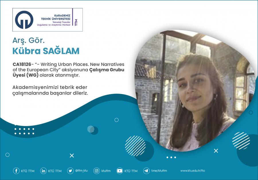 Üniversitemiz Fen Bilimleri Enstitüsü öğretim üyesi Arş. Gör. Kübra SAĞLAM, COST Programı’nın “CA18126 -Writing Urban Places. New Narratives of the European City” aksiyona Çalışma Grubu Üyesi (WG) olarak atanmıştır.