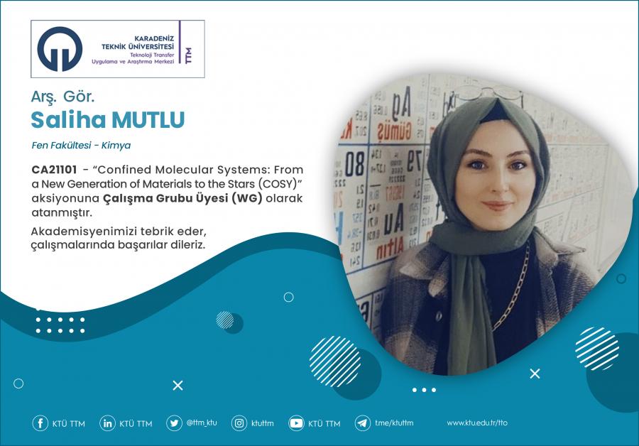 Arş. Gör. Saliha MUTLU COST Programına Çalışma Grubu Üyesi (WG) Olarak Atandı