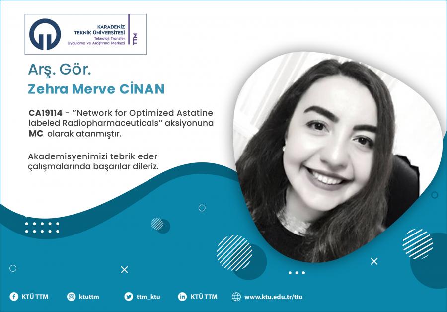 Üniversitemiz Fen Fakültesi Fizik Bölümü'nde öğretim elemanı Arş.Gör. Zehra Merve CİNAN COST Programı’nın “CA19114 - Network for Optimized Astatine labeled Radiopharmaceuticals” isimli aksiyona MC olarak atanmıştır.