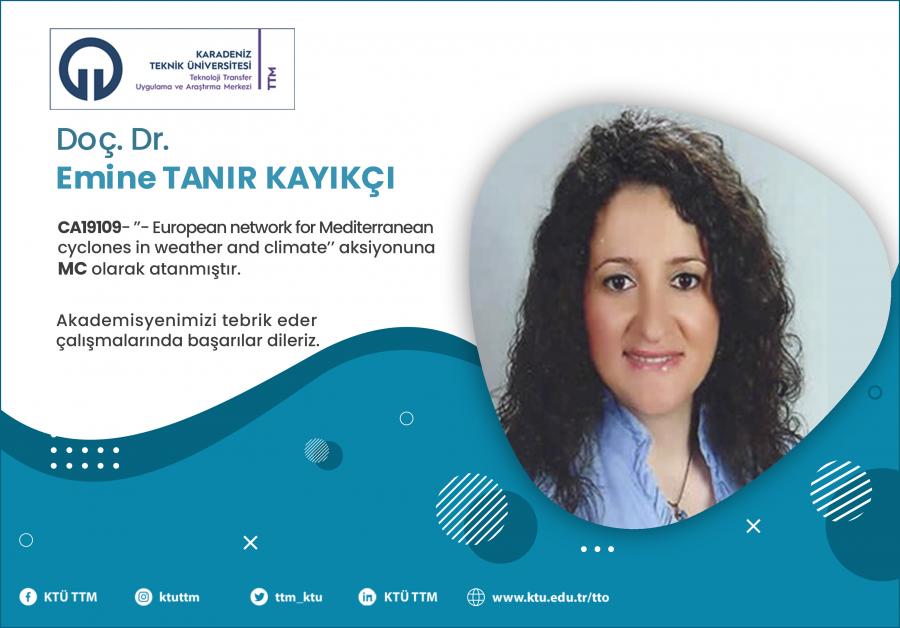 Üniversitemiz Mühendislik Fakültesi Harita Mühendisliği Bölümü'nde öğretim üyesi Doc.Dr. Emine TANIR KAYIKÇI COST Programı’nın “CA19109 - European network for Mediterranean cyclones in weather and climate” isimli aksiyona MC olarak atanmıştır.