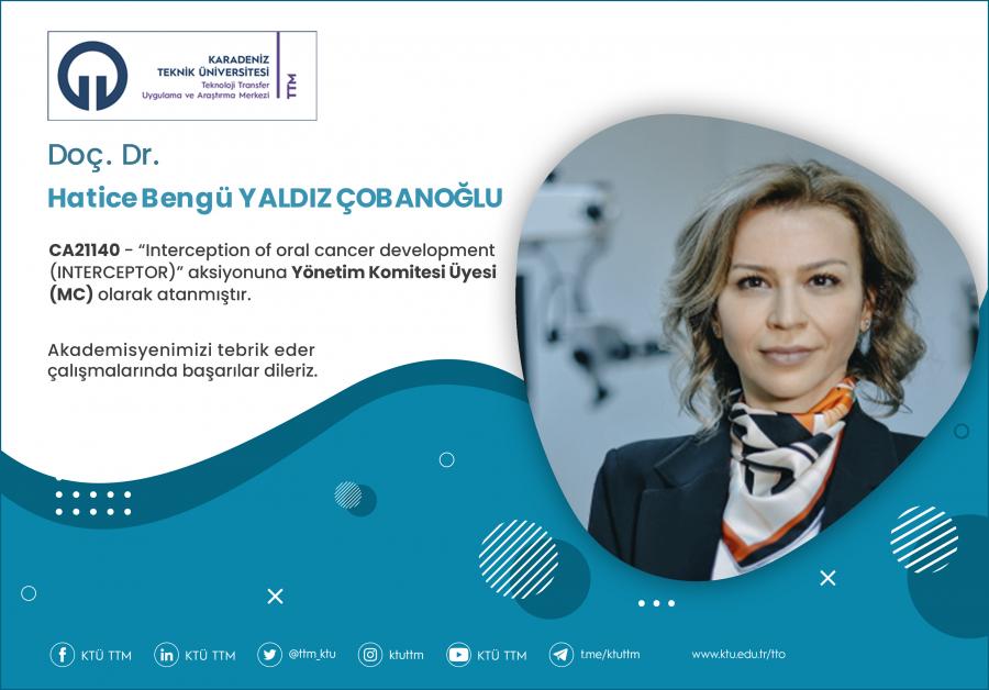 Üniversitemiz Tıp Fakültesi Cerrahi Tıp Bölümü öğretim üyesi Doç. Dr. Hatice Bengü YALDIZ ÇOBANOĞLU, COST Programı’nın “CA21140 - Interception of oral cancer development (INTERCEPTOR)” aksiyonuna Yönetim Komitesi Üyesi (MC) olarak atanmıştır.