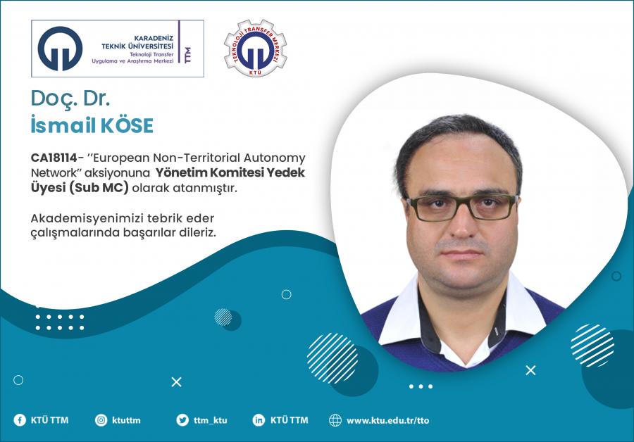 Üniversitemiz İktisadi ve İdari Bilimler Fakültesi Uluslararası İlişkiler öğretim üyesi Doç.Dr. İsmail KÖSE, COST Programı’nın “CA18114 - European Non-Territorial Autonomy Network” aksiyona Yönetim Komitesi Yedek Üyesi (Sub MC) olarak atanmıştır.
