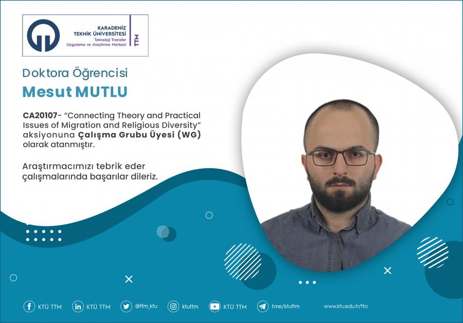 Üniversitemiz Dr. Öğrencisi Mesut MUTLU, COST Programı’nın “CA20107 - Connecting Theory and Practical Issues of Migration and Religious Diversity ” aksiyona Çalışma Grubu Üyesi (WG) olarak atanmıştır.