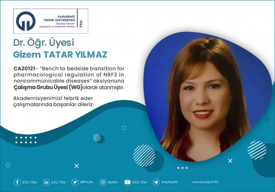 Üniversitemiz Tıp Fakültesi Temel Tıp Bölümü öğretim üyesi Dr. Öğr. Üyesi Gizem TATAR, COST Programı’nın “CA20121 - Bench to bedside transition for pharmacological regulation of NRF2 in noncommunicable diseases” aksiyona Çalışma Grubu Üyesi (WG) olarak atanmıştır.