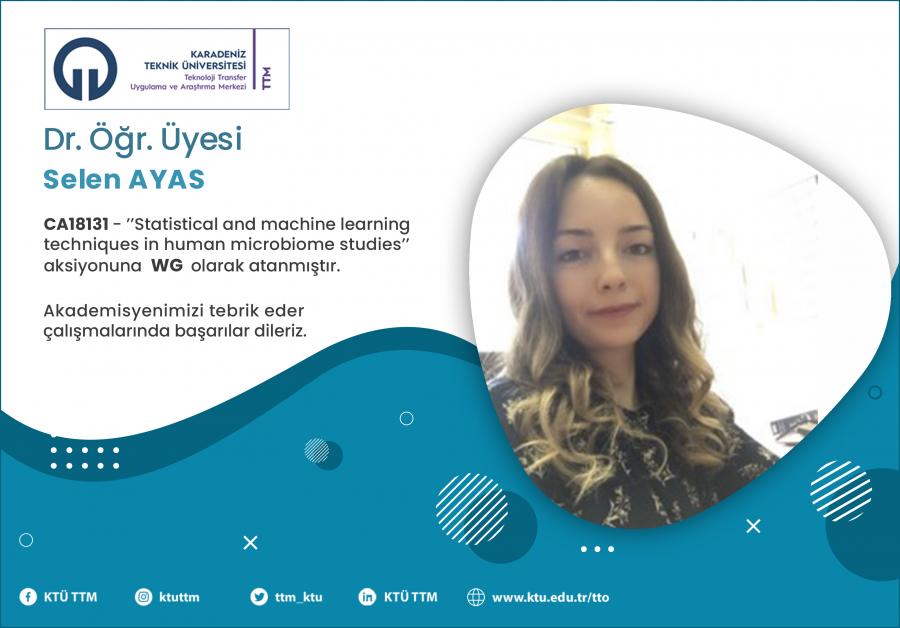 Üniversitemiz Mühendislik Fakültesi Bilgisayar Mühendisliği öğretim üyesi Dr. Öğr. Üyesi Selen AYAS, COST Programı’nın “CA18131 - Statistical and machine learning techniques in human microbiome studies” aksiyona Çalışma Grubu Üyesi (WG) olarak atanmıştır.