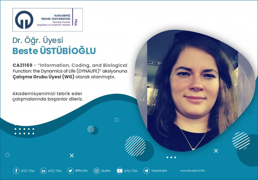 Üniversitemiz Mühendislik Fakültesi Bilgisayar Mühendisliği Bölümü öğretim üyesi Dr.Öğr.Üyesi Beste ÜSTÜBİOĞLU, COST Programı’nın “CA21169 - Information, Coding, and Biological Function: the Dynamics of Life (DYNALIFE) aksiyonuna Çalışma Grubu Üyesi (WG) olarak atanmıştır.