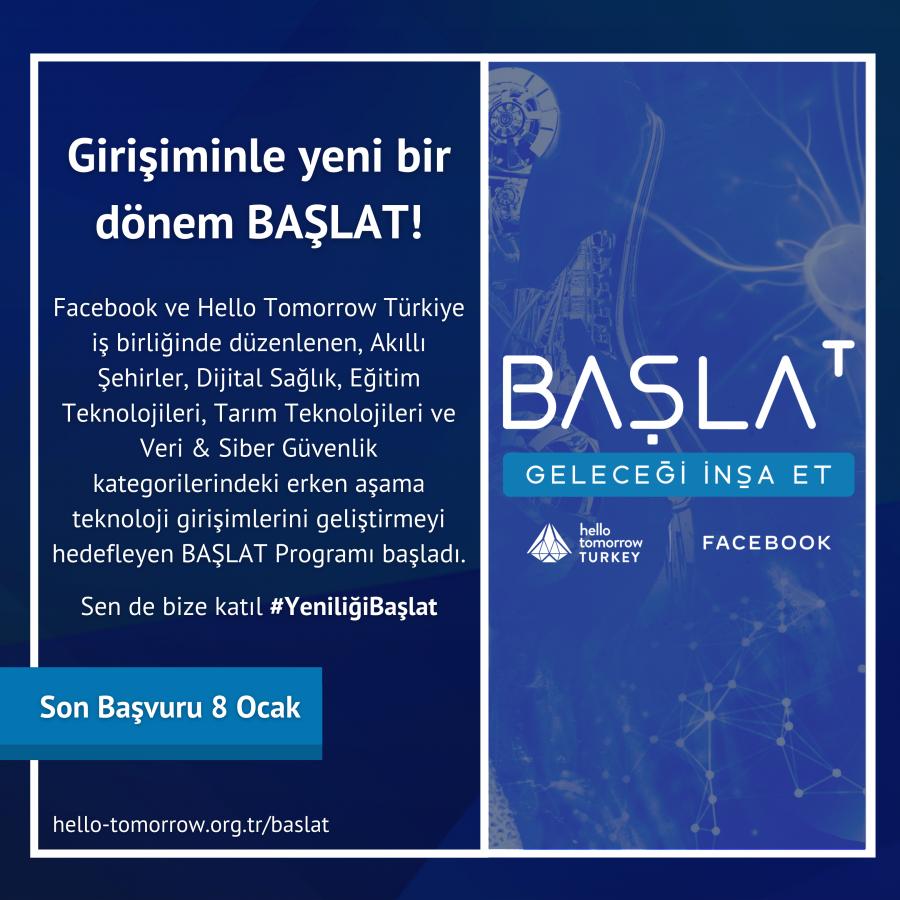 BAŞLAT, Hello Tomorrow Türkiye ve Facebook iş birliğinde düzenlenen bir startup kuluçka programıdır ve erken aşama Akıllı Şehirler, Dijital Sağlık, Eğitim Teknolojileri, Tarım Teknolojileri ve Veri & Siber Güvenlik kategorilerindeki teknoloji startuplarını geliştirmeyi hedeflemektedir.