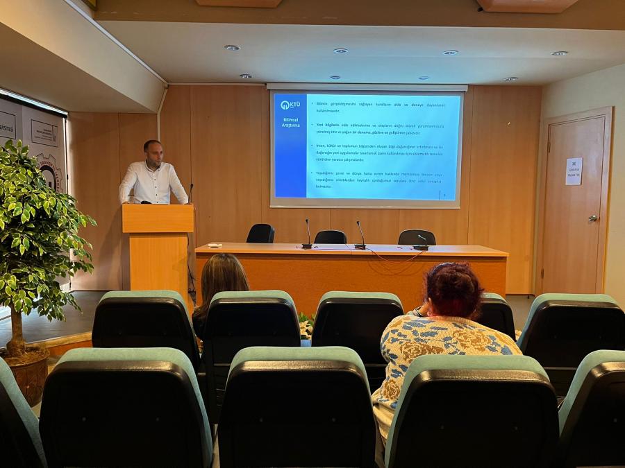 KTÜ TTM ve KTÜ Sosyal Bilimler Enstitüsü iş birliğiyle 21 Ekim 2022 tarihinde KTÜ TTM Seminer Salonunda Sosyal Bilimler Enstitüsü lisansüstü öğrencilerine yönelik “Temel Bilimsel Kavramlar”, “ARDEB, BİDEB ve Üniversite Sanayi İşbirliği Programları”, “COST Aksiyonları”, “Girişimcilik/Şirketleşme” ve “Fikri Sinai Mülkiyet Hakları” konularında KTÜ TTM uzmanları tarafından eğitim etkinliği düzenlenmiştir.