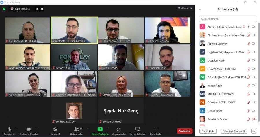17 Ağustos tarihinde gerçekleşen sunum günü etkinliğinde APY’den Doğukan Çetin, Fonbulucu’dan Alperen Şarlayan, Kültepe Yatırım’dan Abdurrahman Çam, Kalyon VC’den Şeyma Çiçek, Fonkolay’dan Kenan Altun, Tarvenn’den Buğra Metin, TT Ventures’dan Bilgehan Yalçınkayalar, Melek yatırımcı Orkun Beyaz ve İrem Atay ile in4startups’tan Şerafettin Özsoy ve Ahmet Sefa Bir girişimcilerin sunumlarını dinlediler. Ayrıca program yürütücüsü kurumlardan KTÜ TTM Şirketleşme ve Girişimcilik Koordinatörü Eren Yılmaz ve Proje Uzmanı Güler Tuğba Gültekin ile Kalkınma Ajansı’ndan Mehmet Bozdoğan ve Oğuzhan Şatır da yatırımcı görüşmelerinde yerlerini aldılar.