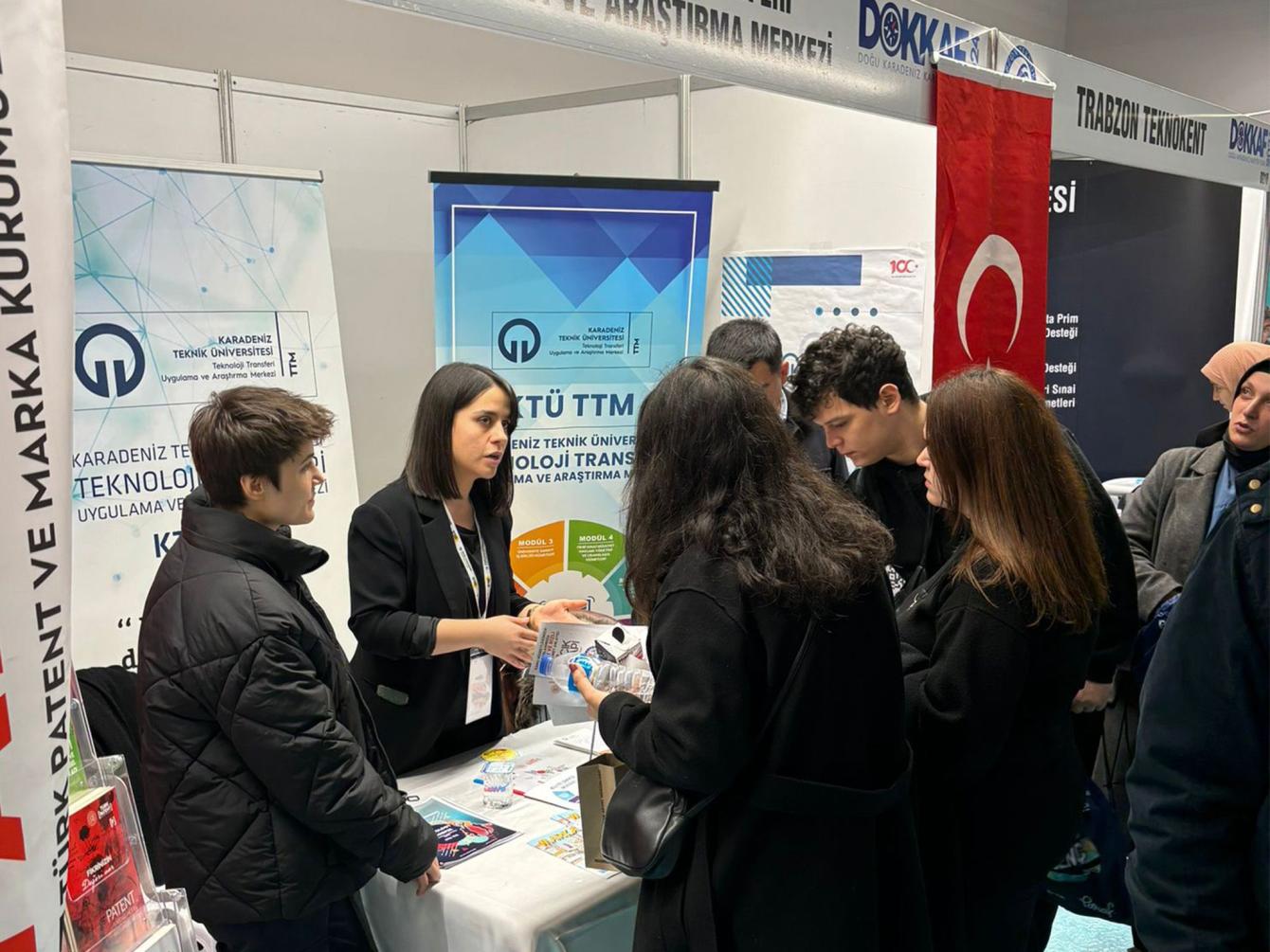 8 - 9 Ocak 2024 tarihlerinde Cumhurbaşkanlığı İnsan Kaynakları Ofisi koordinatörlüğünde, Karadeniz Teknik Üniversitesi’nin 4. kez ev sahipliği yaptığı DOKAF’24 Doğu Karadeniz Kariyer Fuarı etkinliğinde KTÜ TTM gençlerle bir aradaydı. Teknoloji Transferi ekosisteminde gençlerin erken farkındalıkla henüz iş dünyasına atılmadan mezuniyet sonrası hayata başarılı bir girişimci olarak adım atmalarını sağlayacak projecilik kültürü, girişimcilik destekleri ve fikri ve sınai mülkiyet haklarını kapsayan içerikler paylaşıldı..