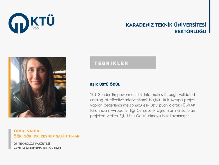 Öğr. Gör. Dr. Zeynep ŞAHİN TİMAR'a Eşik Üstü Ödül