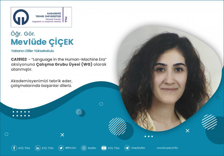 Üniversitemiz Yabancı Diller Yüksekokulu öğretim üyesi Öğr. Gör. Mevlüde ÇİÇEK, COST Programı’nın “CA19102 - Language in the Human-Machine Era aksiyonuna Çalışma Grubu Üyesi (WG)” olarak atanmıştır.