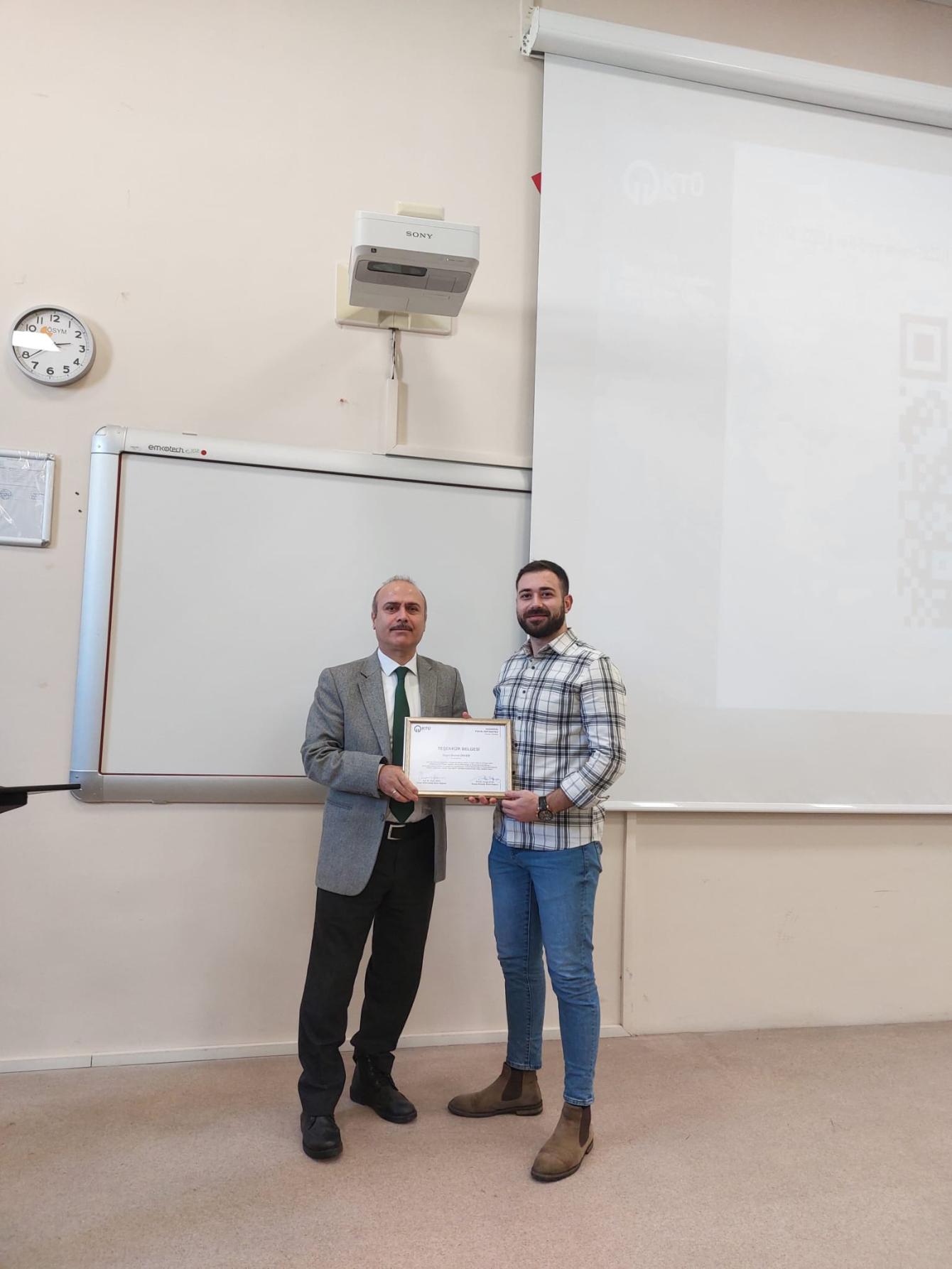 KTÜ TTM ve KTÜ Orman Fakültesi iş birliğiyle; Orman Mühendisliği ve Peyzaj Mimarlığı lisans öğrencilerine yönelik Disiplinlerarası Çalışma kapsamında Orman Fakültesi Sedir amfisinde 15.11.2023 tarihinde KTÜ TTM Proje Destek Hizmetleri modülünden Öğr. Gör. Gözde SAĞLAM ve Proje Uzmanı M. Serhat ÜNVER tarafından TÜBİTAK Burs Programları ile Lisans Öğrencilerine Yönelik Proje Hazırlama konularında eğitim düzenlendi.