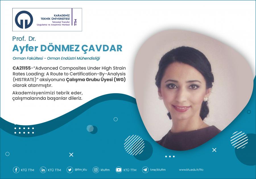 Üniversitemiz Orman Fakültesi Orman Endüstri Mühendisliği Bölümü öğretim üyesi Prof. Dr. Ayfer DÖNMEZ ÇAVDAR, COST Programı’nın “CA21155 - Advanced Composites Under High Strain Rates Loading: A Route to Certification-By-Analysis (HISTRATE) aksiyonuna Çalışma Grubu Üyesi (WG)” olarak atanmıştır.