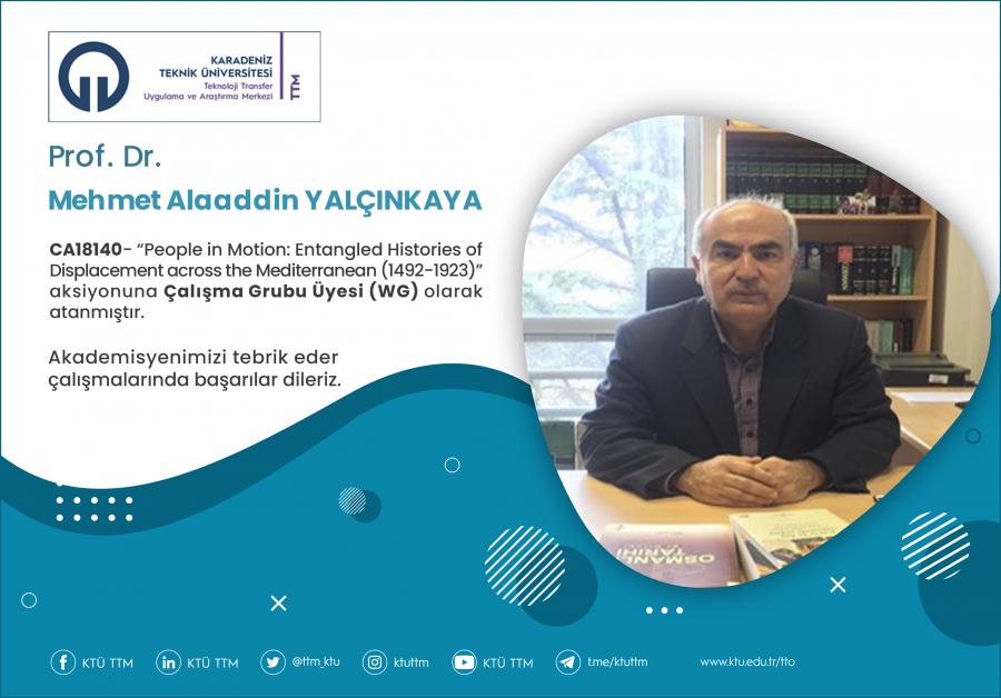 Üniversitemiz Edebiyat Fakültesi Tarih Bölümü öğretim üyesi Prof. Dr. Mehmet Alaaddin YALÇINKAYA, COST Programı’nın “CA18140 - People in Motion: Entangled Histories of Displacement across the Mediterranean (1492-1923)” aksiyona Çalışma Grubu Üyesi (WG) olarak atanmıştır.