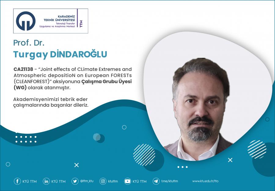 Üniversitemiz Mühendislik Fakültesi Orman Mühendisliği Mühendisliği Bölümü öğretim üyesi Prof. Dr. Turgay DİNDAROĞLU, COST Programı’nın “CA21138 - Joint effects of CLimate Extremes and Atmospheric depositioN on European FORESTs (CLEANFOREST)” aksiyonuna Çalışma Grubu Üyesi (WG) olarak atanmıştır.