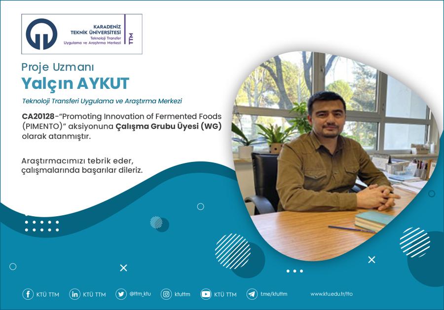 Üniversitemiz Teknoloji Transferi Uygulama ve Araştırma Merkezi personeli Proje Uzmanı Yalçın AYKUT, COST Programı’nın “CA20128 - Promoting Innovation of Fermented Foods (PIMENTO)” aksiyonuna Çalışma Grubu Üyesi (WG) olarak atanmıştır.