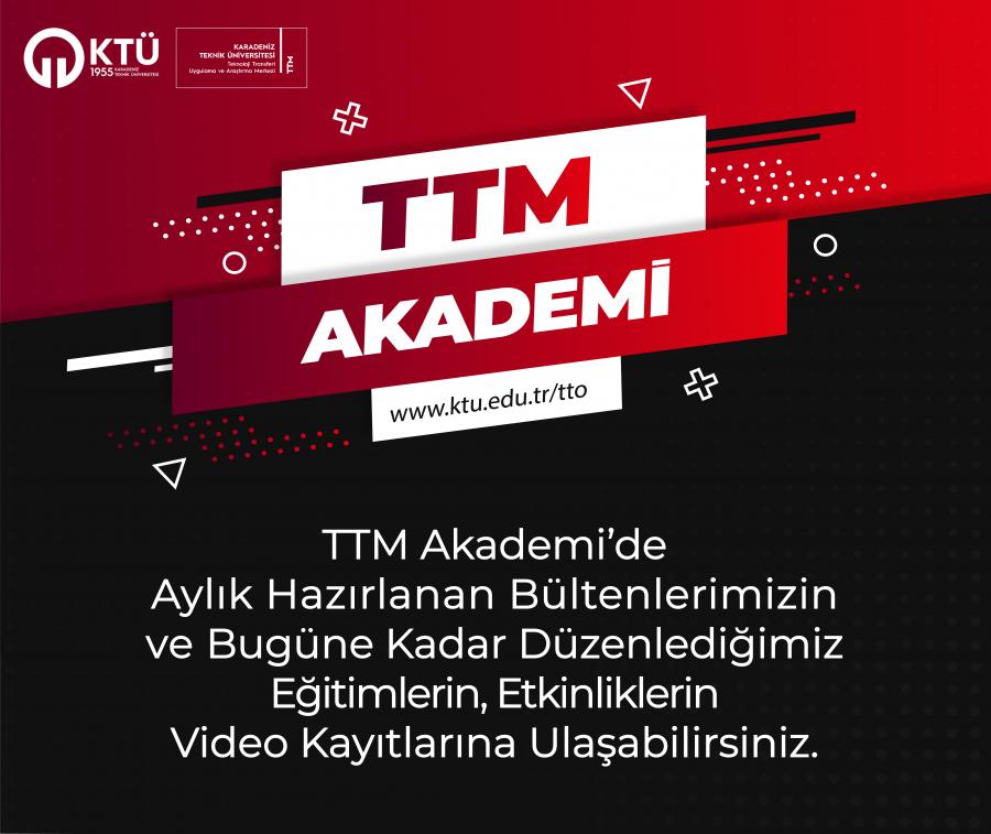 TTM Akademi ile KTÜ TTM'nin Düzenlediği Eğitim, Etkinlik Kayıtlarına ve Her Ay Yayınladığı Video Bültenlere Ulaşabilirsiniz