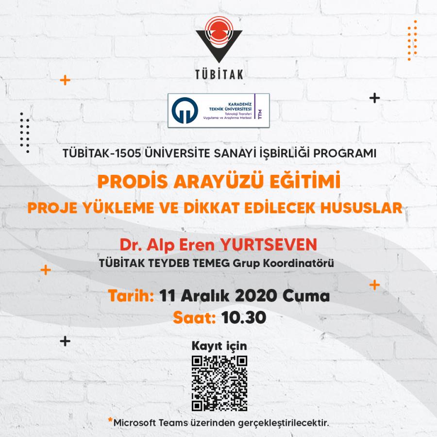 TÜBİTAK 1505 Üniversite Sanayi İşbirliği Destek Programı kapsamında PRODİS Arayüzü Proje Yükleme ve Dikkat Edilecek Hususlar Eğitimi Düzenlenecektir!